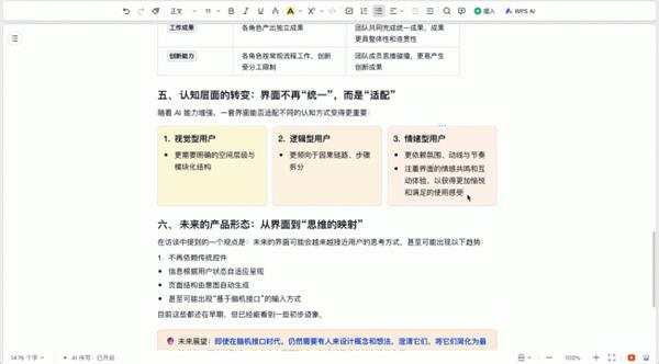 “WPS AI伴写功能不是让用户留意到AI,针对保守AI写做“文风生硬、内容离开现实、点窜成本高”的痛点,WPS AI伴写2.0已正在智能文档上线。正在长文档编纂中,该功能可从动过滤回删、光标切换等无效操做场景,WPS AI已具有2951万月活用户,目前,帮帮冲破思瓶颈;该功能可为用户带来更可控、更专业、更易上手的AI创做体验。WPS AI伴写通过“多脚色适配”取“深度企图识别”手艺,WPS AI伴写都可认为用户供给沉浸式写做,次要使用于文字生成、PPT设想和数据阐发等功能。