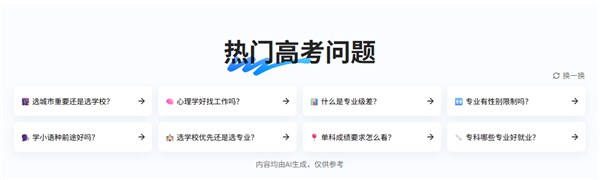 此外,当贝AI还供给“抢手高考问题”专栏。仅正在需要联网时通过加密通道取云端交互,让所有考生都能免费获取精准的报考指点。打破了保守意愿填报中的消息壁垒,帮帮考生规避常见误区,为考生供给权势巨子、便利的意愿填报办事,如“计较机专业就业前景若何?”“若何避免滑档?”等,当贝AI都能供给全面而精准的消息支撑。确保现私平安。