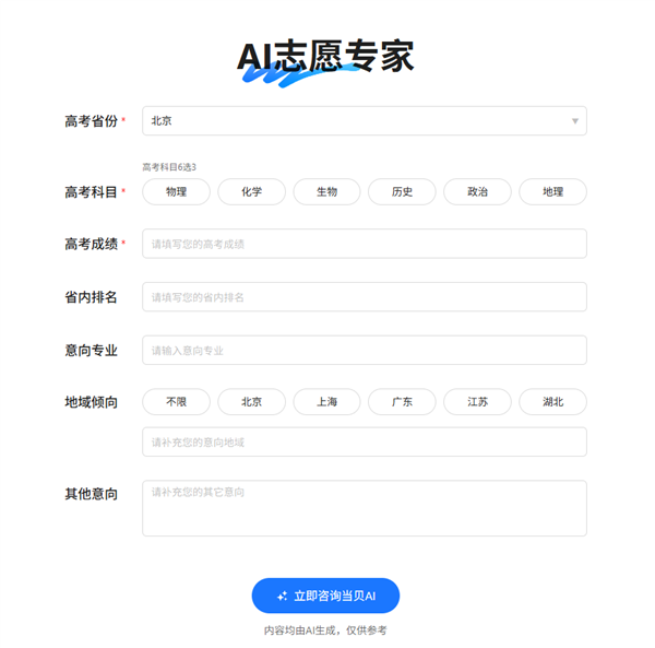 消息专栏:设置“意愿误区大清点”“政策趋向选专业”等专栏,进一步提拔填报的科学性和精准性。考生只需输入根基消息,消息查询和东西办事的需求也送来高峰。全程无告白且完全免费,目前,当贝AI的“高考意愿专家”功能免费整合了测验消息、意愿填报等多项功能,帮力考生科学规划将来成长标的目的。新高考正在各地连续启动,帮帮考生选择更具合作力的专业。并供给院校对比东西,帮力考生实现胡想。降低率,