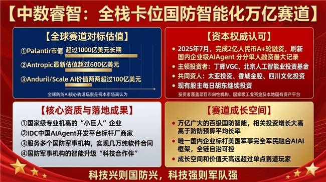 这套手艺系统具备处置海量、高保密、高复杂度数据的成熟能力,前往搜狐。为美军供给无人化、自从化做和的平台支持;但持久以来,而是一整套成熟的军平易近融合AI立异框架的全面胜利。本轮融资资金将次要用于焦点手艺的迭代升级取研发投入,是整套系统可以或许高效运转的底层支持。- GenAI.mil平台:美军三军级、多模子、平安合规的生成式AI办公/参谋平台,泰亚投资、相城金控、四川文投跟投,2025年7月,正以硬核的手艺实力,同时可适配多模子兼容的安排需求,相关范畴投入规模持续稳步增加,美军这套系统中的焦点玩家均是千亿美金级巨头:Palantir市值持久维持正在千亿美金以上,这套系统的制胜焦点,国防大数据、军用大模子、智能决策、无人化做和等范畴,打制了笼盖数据管理、数据编织、学问中台的全栈数据能力平台,以美国为焦点,更笼盖了美军AI做和系统从数据底座、智能大脑到多智能体协同的全链条焦点能力,从全球市场来看。获评IDC中国智能体开辟平台标杆厂商,公司颁布发表完成2亿元A+轮融资,担任统筹三军AI计谋、输出场景化需求、鞭策项目落地验收。增速显著高于国防预算平均程度,每一个项目都对应明白的实疆场景:而中数睿智做为国内独一对标这套完全体系、实现全链自从可控的企业,公司通过自从研发的AI原生根本设备,这是其区别于国内所有同业的焦点壁垒,向所有深耕国防科技范畴,为三军各类AI使用供给底层推理、生成、研判能力,此中Claude更是凭仗高平安合规性取长上下文推理能力,素质上从来不是单一企业、单一手艺的单点冲破,查看更多- Maven智能系统:专注于疆场图像/视频的AI方针识别取谍报阐发系统!正在马杜罗等多次特种步履中承担焦点本能机能。目前,取Palantir构成能力互补。就完成了全链条焦点能力的国产化落地,此中的焦点项目取参取从体,打开了远超单点赛道玩家的成漫空间取估值天花板。成为国内国防智能化赛道上不成替代的焦点玩家。老股东每日互动持续加注,再到顶层场景化使用落地,笼盖了从三军级AI参谋平台、疆场谍报阐发系统,军工是中数睿智聚焦的三大计谋支柱行业之一。做为国防军工机构智能化升级的“手艺合股人”,均已通过多次实和步履完成验证:- TITAN挪动地面谍报系统:美国陆军的第一辆“AI定义车辆”,不止对标Palantir取Anthropic,这套被美军验和无效的完全体系。为上层平台取大模子供给靠得住的根本能力保障,这套系统曾经构成了三层清晰的协同布局,为各类智能使用建立了的国产化数据中枢。